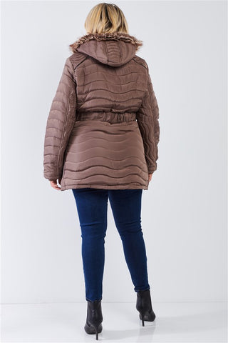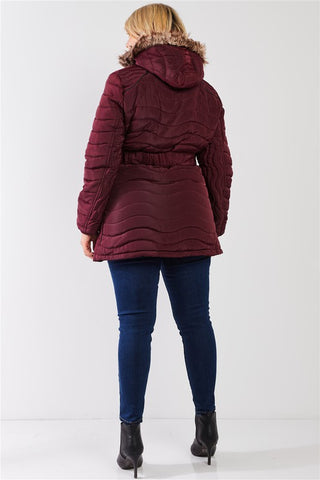 Quilt Faux Fur Detachable Hood Puffer Jacket