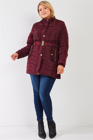 * Item Features: solid color, long sleeve w elastic ribbed under hem, detachable zip off hood lined w faux fur for extra warmth w faux fur trim, high neckline, padded design, front zip fastening pockets w faux snap buttons and mock pockets, elasticated belt with gold clasp hook closure, faux fur lining, side stretchy pleat inserts, cute look, trendy design, activewear, snowboard and skiing outfit, perfect winter jacket!